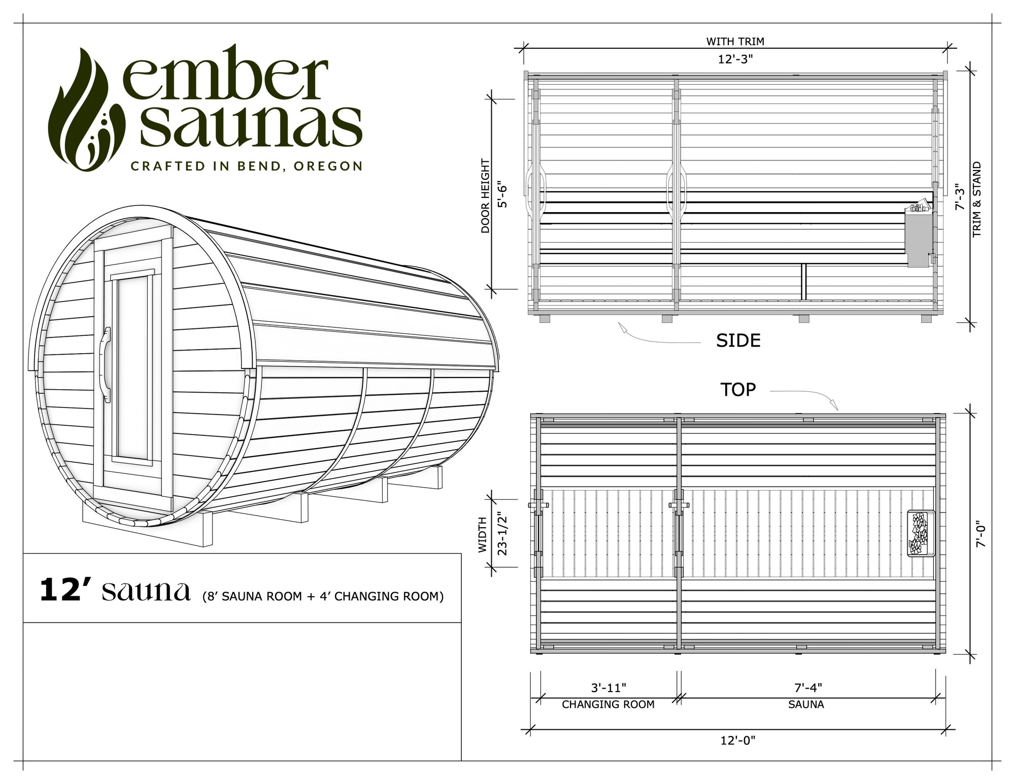 12’ BARREL SAUNA (8’ sauna room + 4’ changing room)