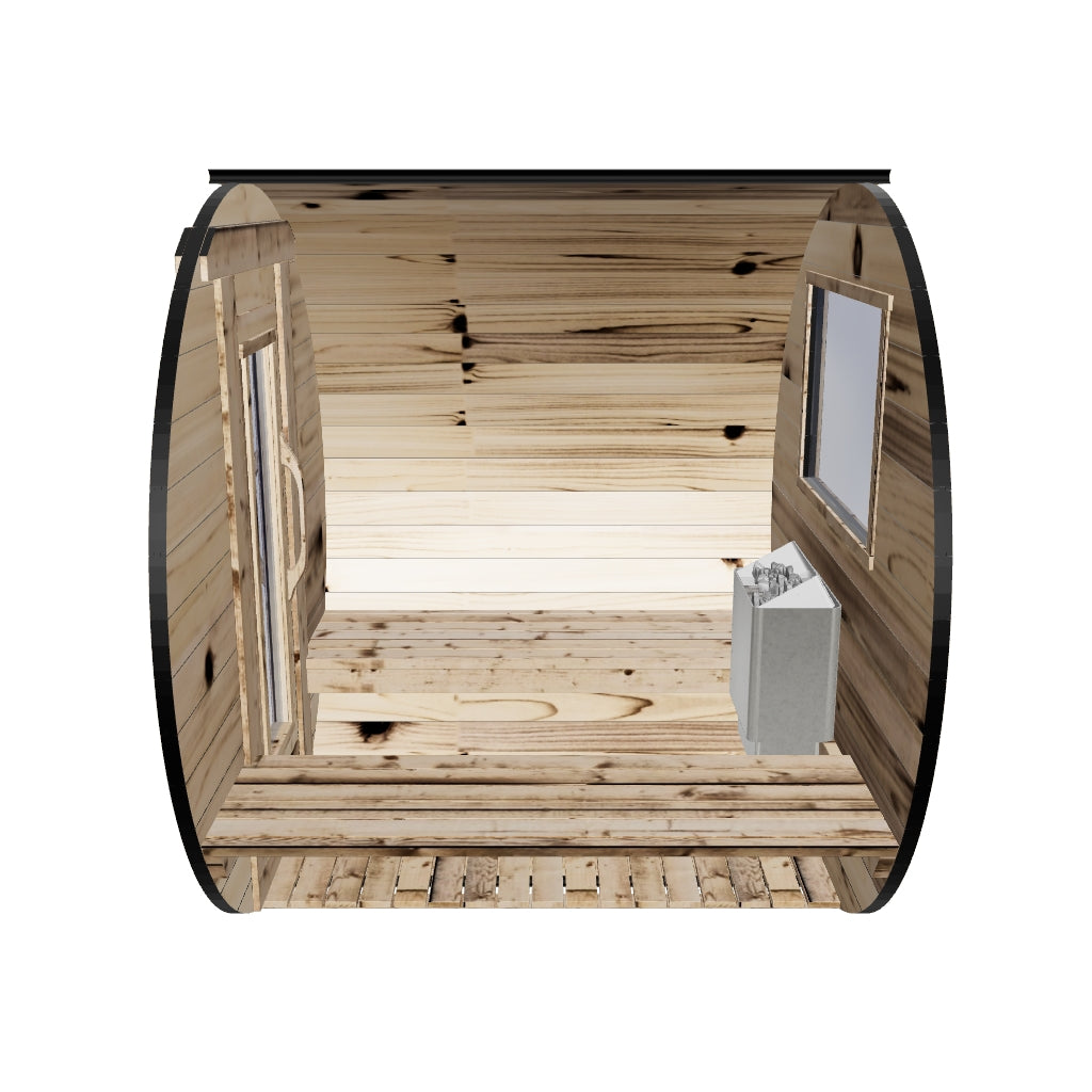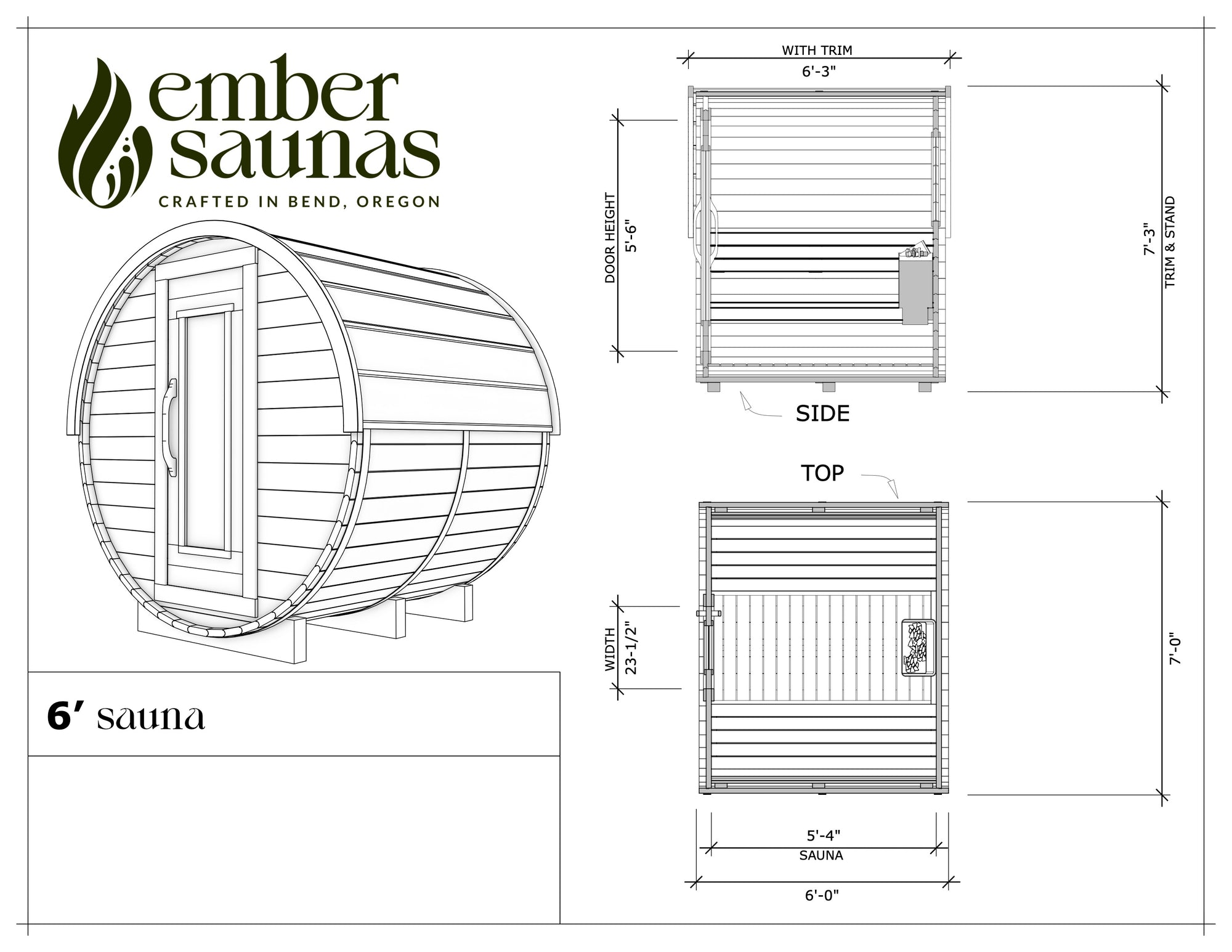 A 7ft-diameter barrel sauna handcrafted in Bend, Oregon from premium Western Red Cedar. The 6’ layout is compact and efficient, making it perfect for smaller yards, cabins, or ADUs while still delivering full heat performance. Ideal for 2–4 people who want a classic, cozy sauna experience.
